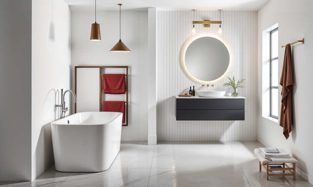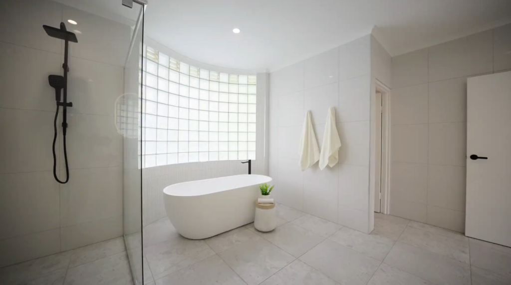We began by removing an old glass shower enclosure to make room for a sleek, freestanding modern bathtub. We then retiled the bathroom, ensuring a clean, contemporary finish that complemented the new bathtub installation.